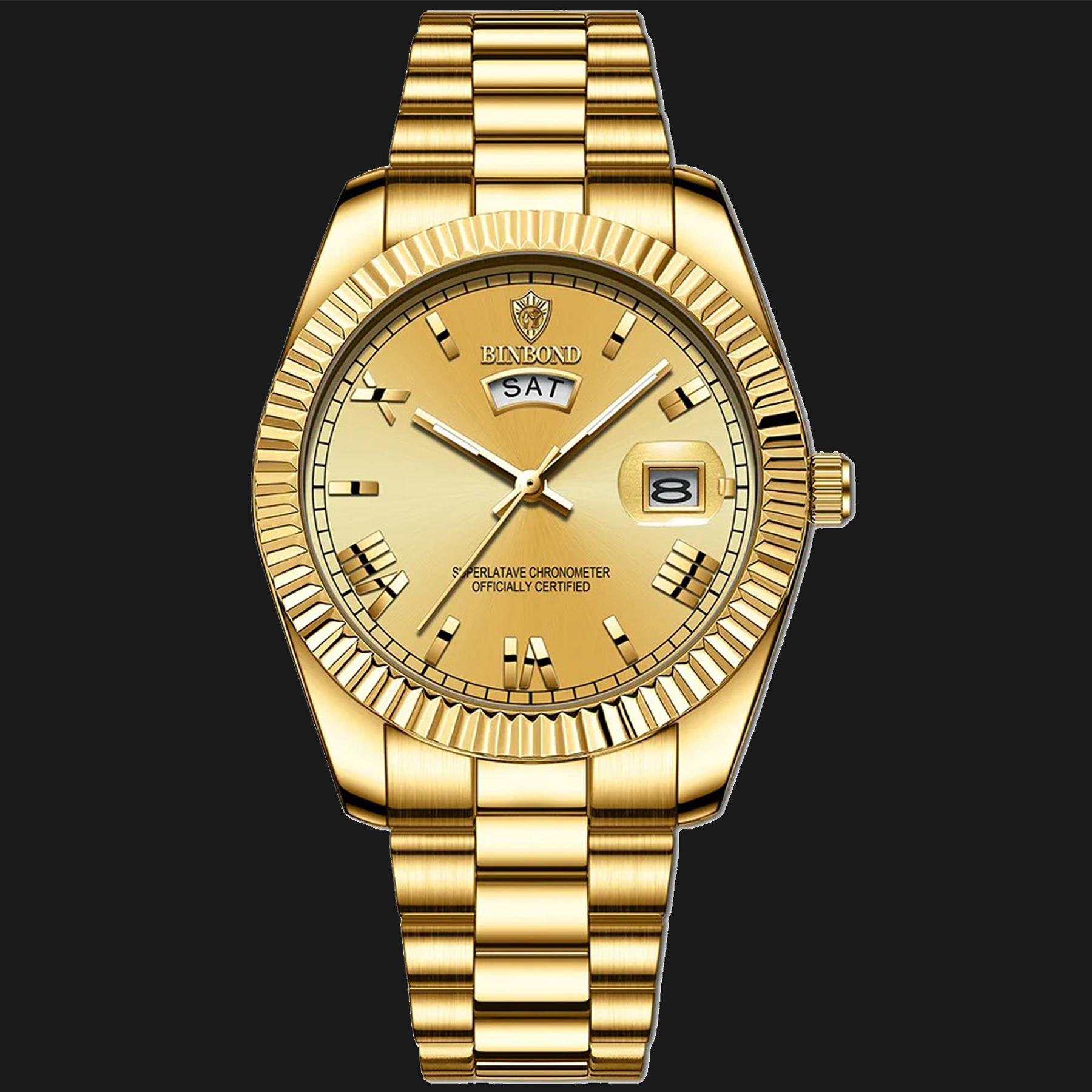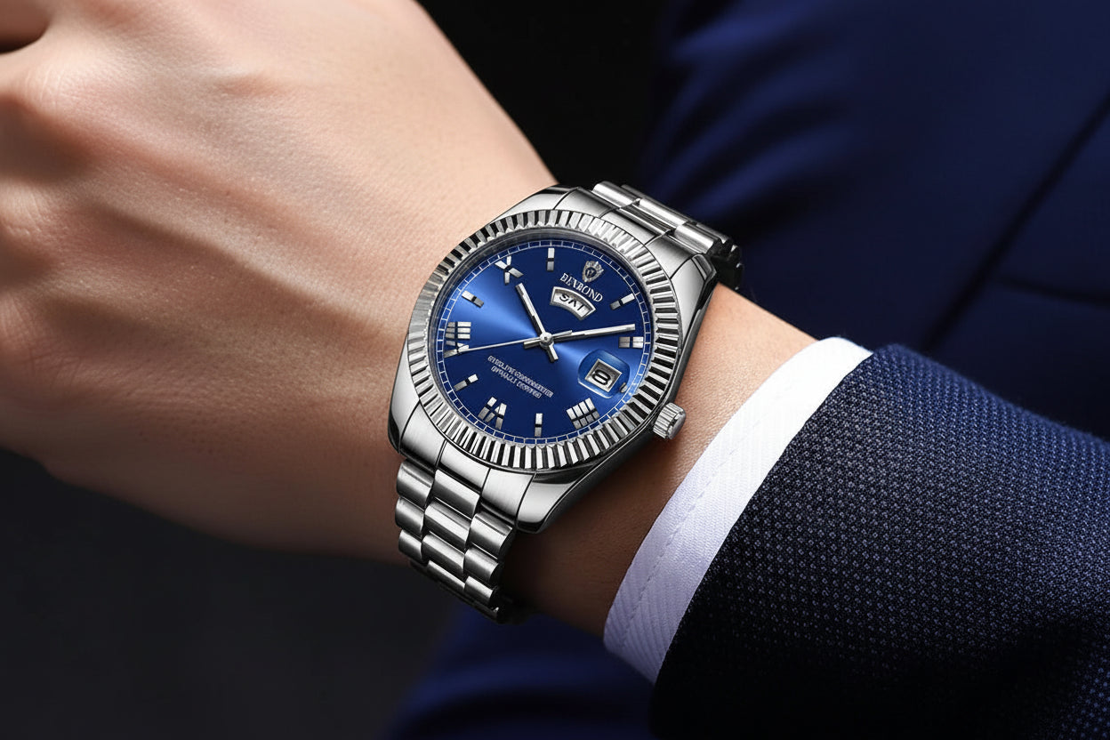 - Design de Prestígio Absoluto: Apresenta um bezel canelado icônico que captura e reflete a luz de forma singular, garantindo autoridade e presença imediata no pulso.